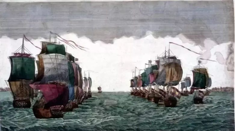 澎湖海战发生在 1683 年,是明清易代的收尾战役之一。战场在海上,冲突本质却还是“谁来做这个天下的主人”。一边是已经控制大陆、代表新王朝的清帝国,一边是撤退到台湾、打出“反清复明”旗号的郑氏政权。双方使用的都是传统帆船舰队,火炮虽然重要,但战斗节奏仍然依赖风向、阵型和近战。台湾在这时,是汉人王朝内部争夺正统的最后棋子。