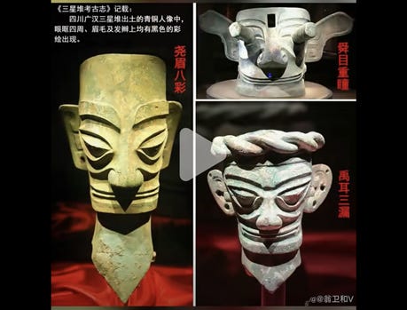 每隔一阵,三星堆都会被重新“解释”一次。有人说它是外星文明,有人说它是古埃及的旁支,也有人说,既然面具造型奇特,古书里又写过“尧眉八采,舜目重瞳,禹耳三漏”,那三星堆会不会干脆挖出了尧舜禹?这类说法听上去很有戏剧性,也很适合短视频时代的传播节奏:一句话,古蜀和中原上古史突然连上了,谜题像是一下被揭开了。可问题也正在这里。越是诱人的解释,越需要先问一句:证据够不够。